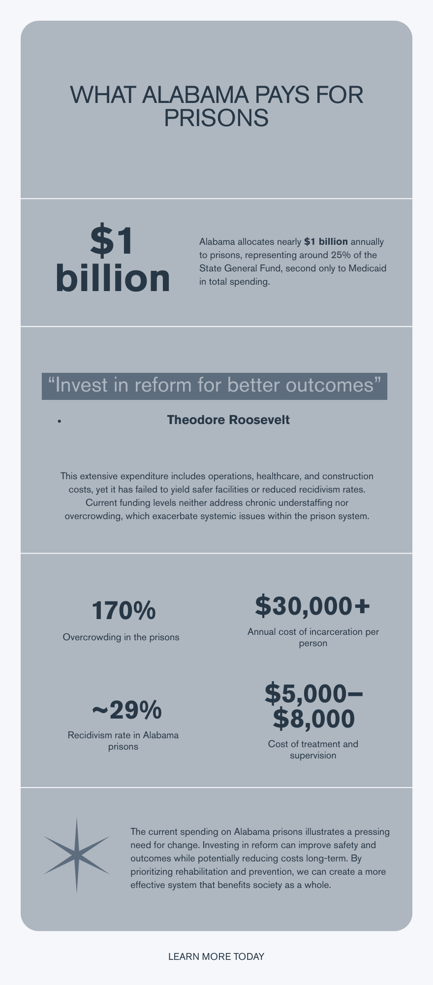 Clear, data-driven summaries of Alabama’s prison crisis and the Reform Blueprint.