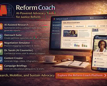 Reform Coach is an AI-powered advocacy toolkit designed to support justice reform efforts from research to action and sustainability. It functions as an all-in-one digital assistant for advocates, combining policy analysis, campaign support, storytelling, and wellness tools in a single platform.