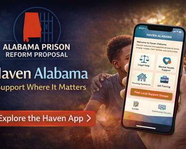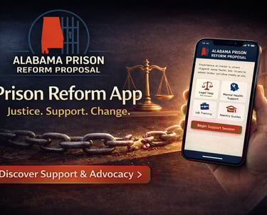 The platform includes advanced policy research tools that summarize legislation, compare state-level incarceration data with visual charts and verified sources, generate briefing documents for lawmakers, and answer Alabama-specific questions using authoritative regulatory context. An embedded AI analyst enables interactive legislative Q&A, while campaign briefings and curated educational videos provide grounding and inspiration.