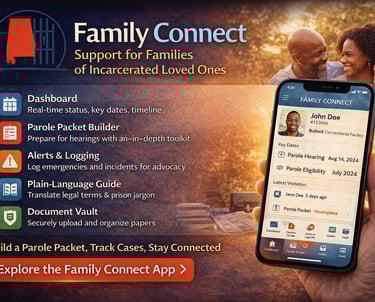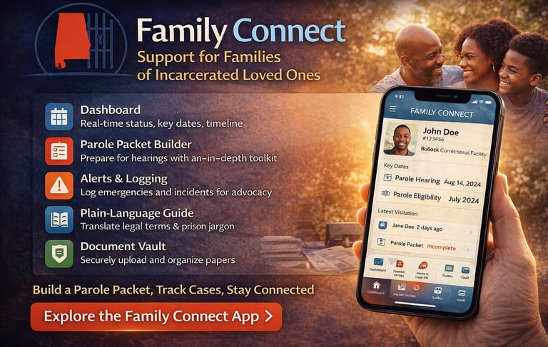 The Family Connect application is a support platform designed for the families of incarcerated individuals in Alabama. It aims to help them navigate the complexities of the correctional and parole system with greater clarity and confidence.